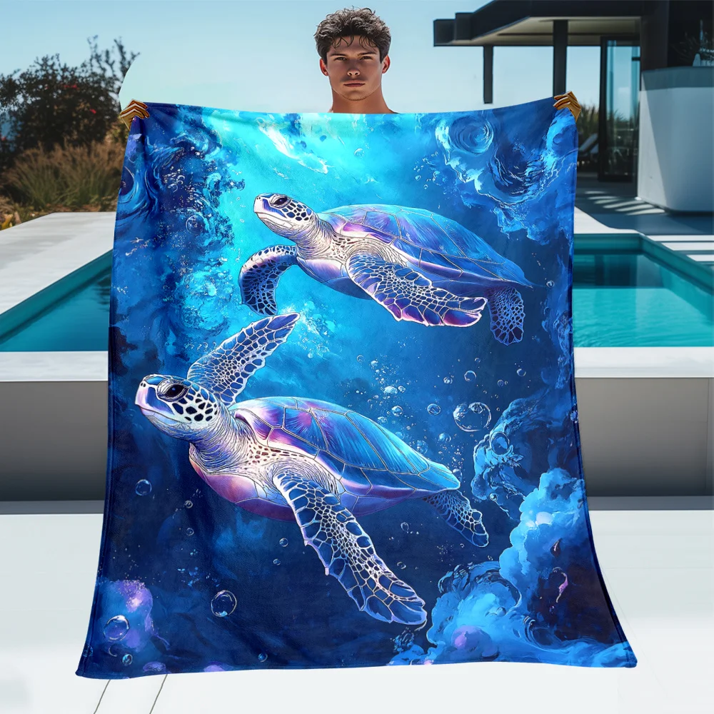 1pc Ultra-Soft Sea Turtle Flannel Blanket - Lightweight & Warm,...