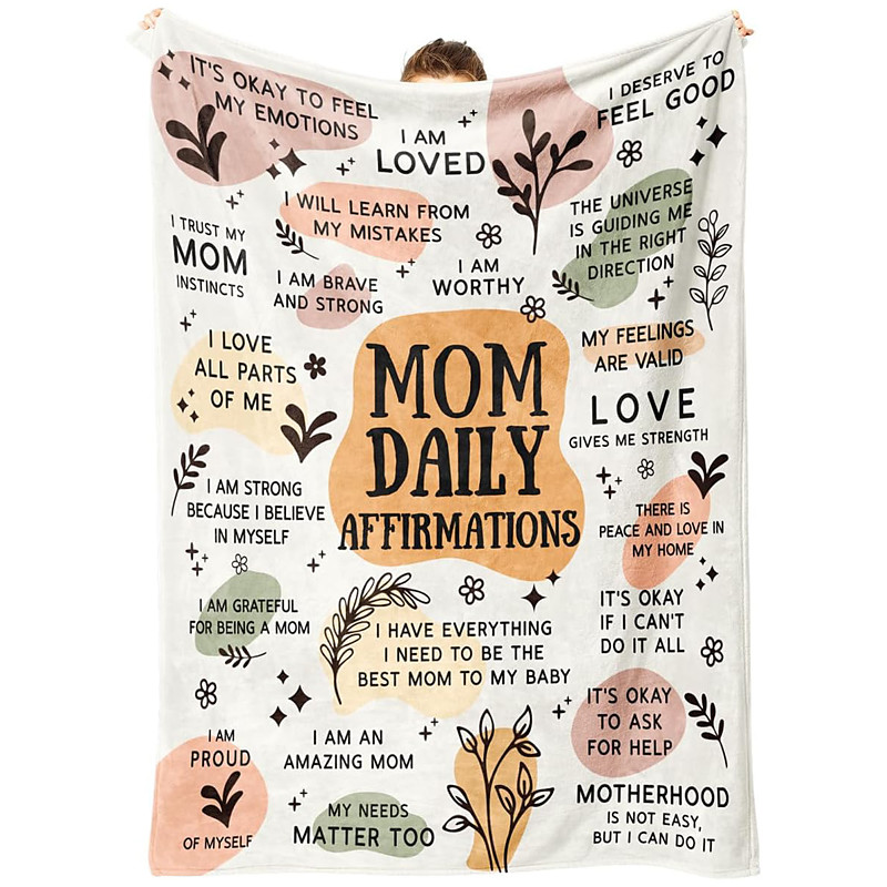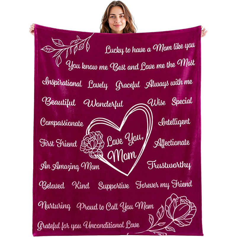 Mother's Day Themed Blanket Soft Cozy Gift for Mom Floral Heart Pri...