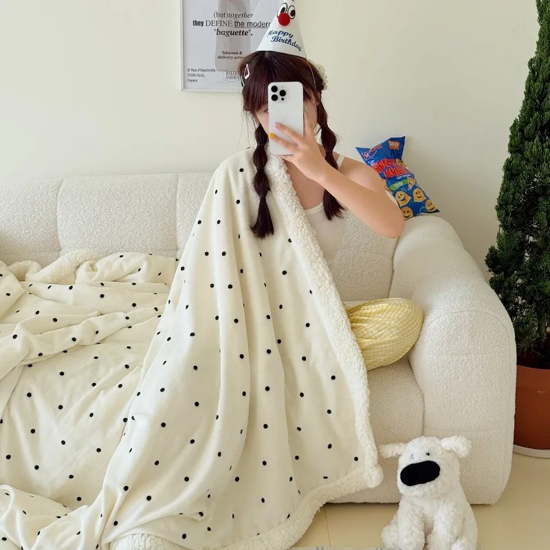 Korean small polka dot lamb wool milk fleece blanket autumn and winter blanket nap shawl blanket