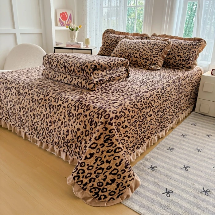 Milk Velvet Small Lace Bed Cover Set of Four Pieces