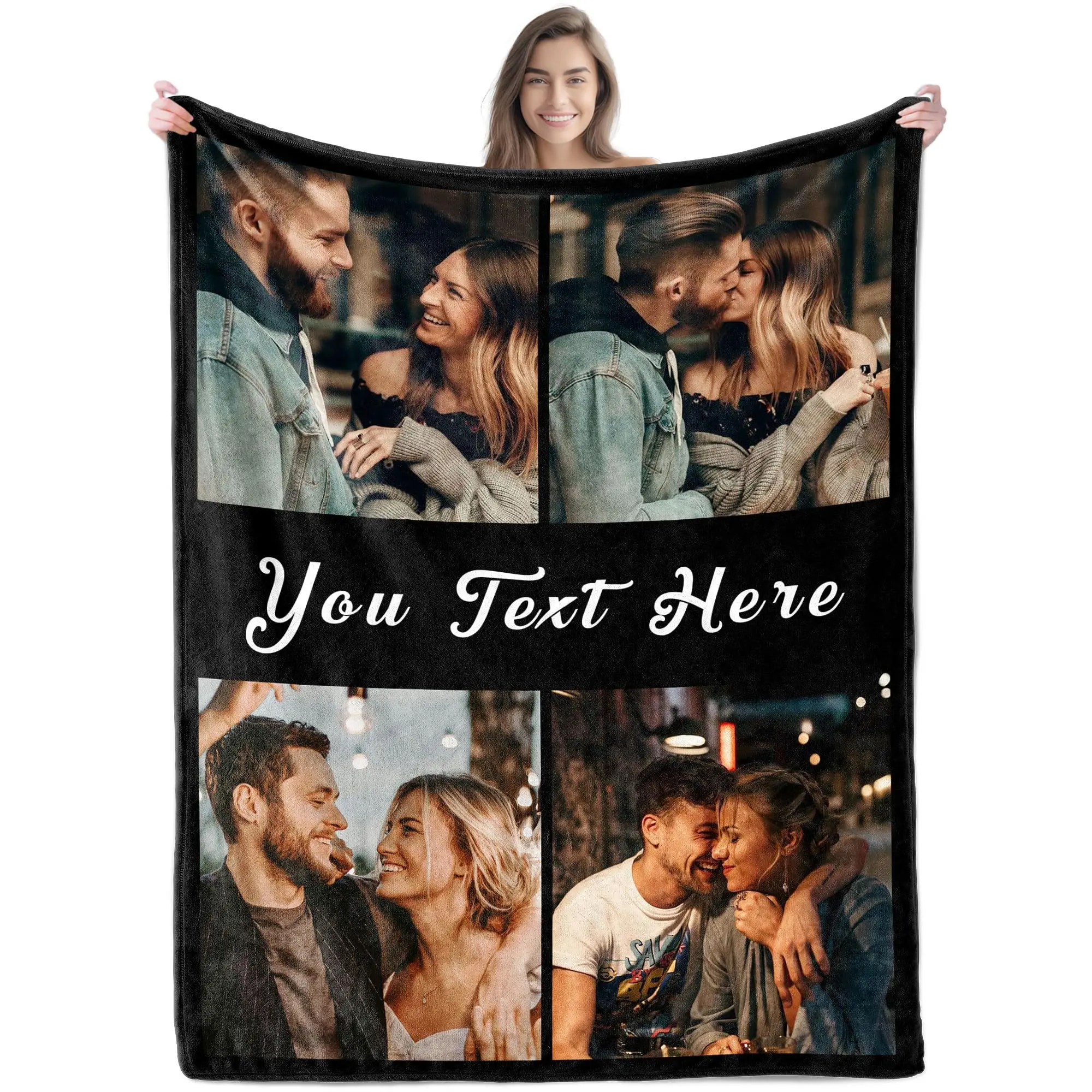 Custom Blanket 3 Photos Printed in USA Personalized Text Customized Blanket for Valentine's Day Gift...