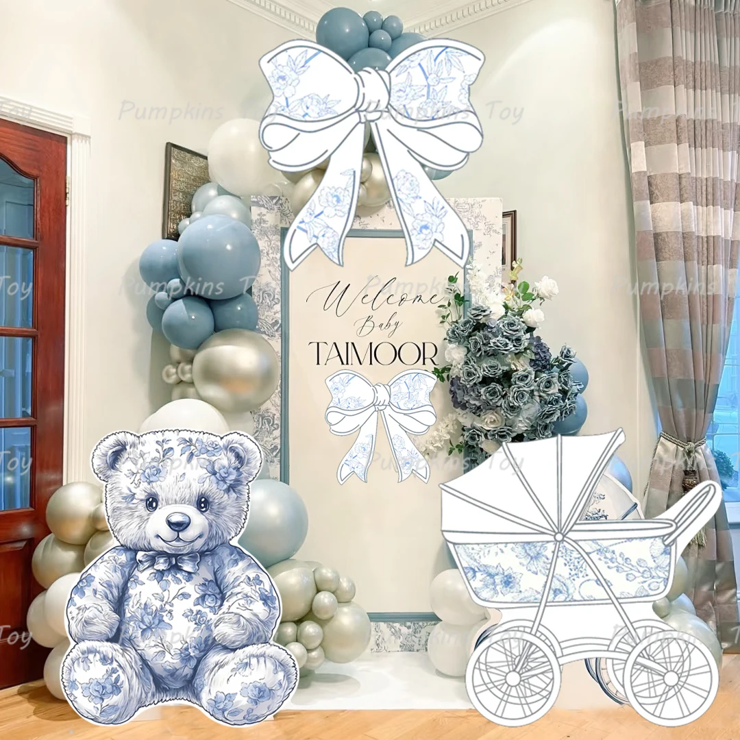 36/24/18IN Floral Baby Bear Bow Strollers Cardboard Cutouts Baby Shower Party Backdrops Birthday Wed...