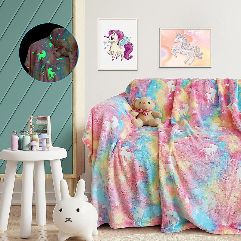 Flannel Glow-in-the-Dark Horse Blanket, Soft Toddler Nursery Throw,...