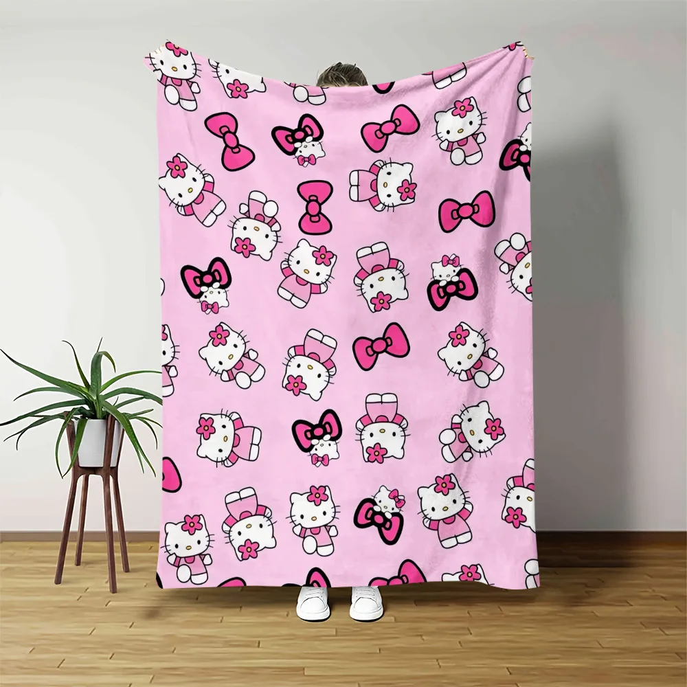 Hello Kitty Pink Bow Pattern Flannel Blanket Single Print Cute Warm Cozy Blanket Home Bedroom Living...