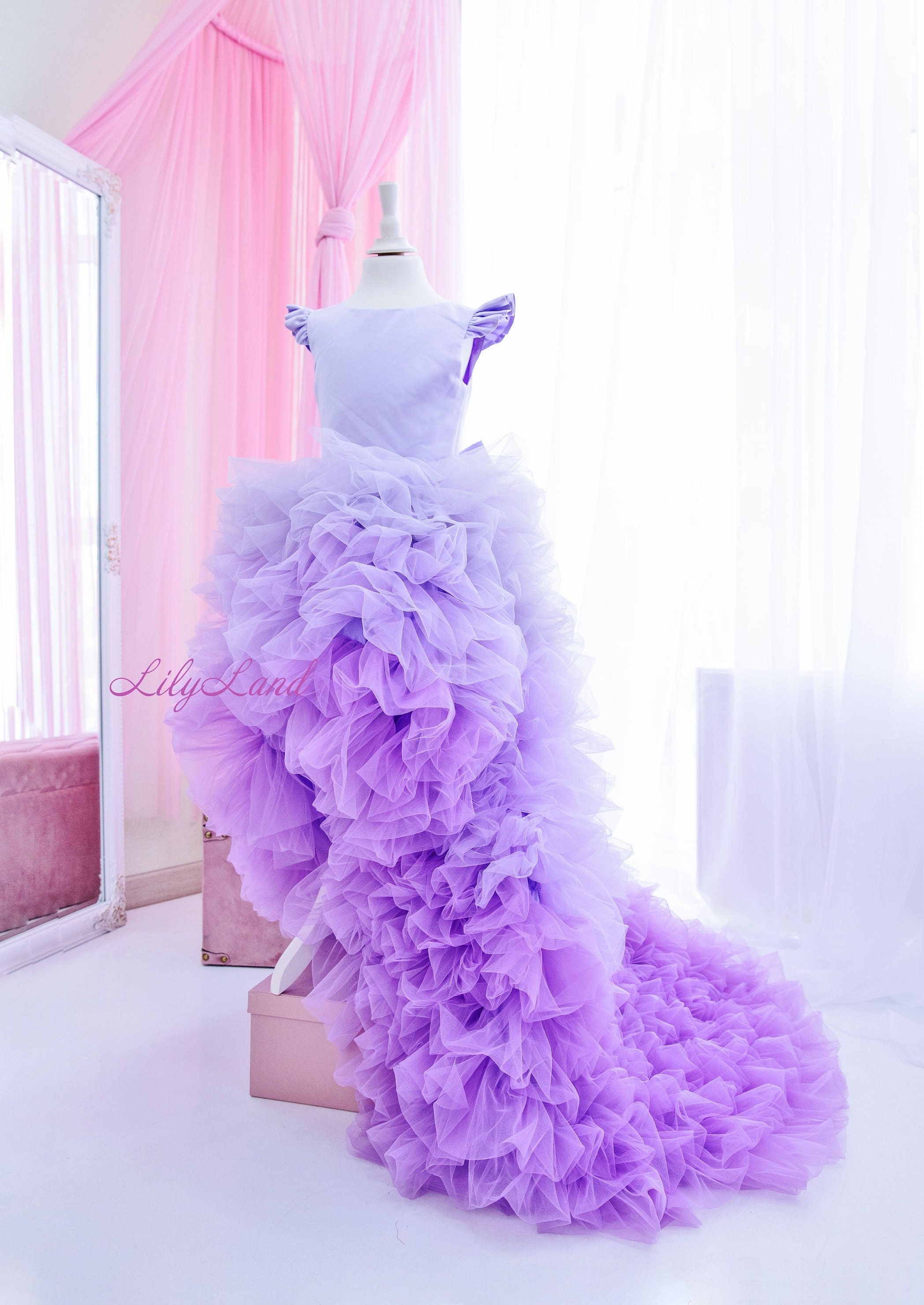 Lilac Girl Dress, Ombre Dress, Birthday Girl Dress, Tulle Dress, Flower Girl Dress, Dress With Train...