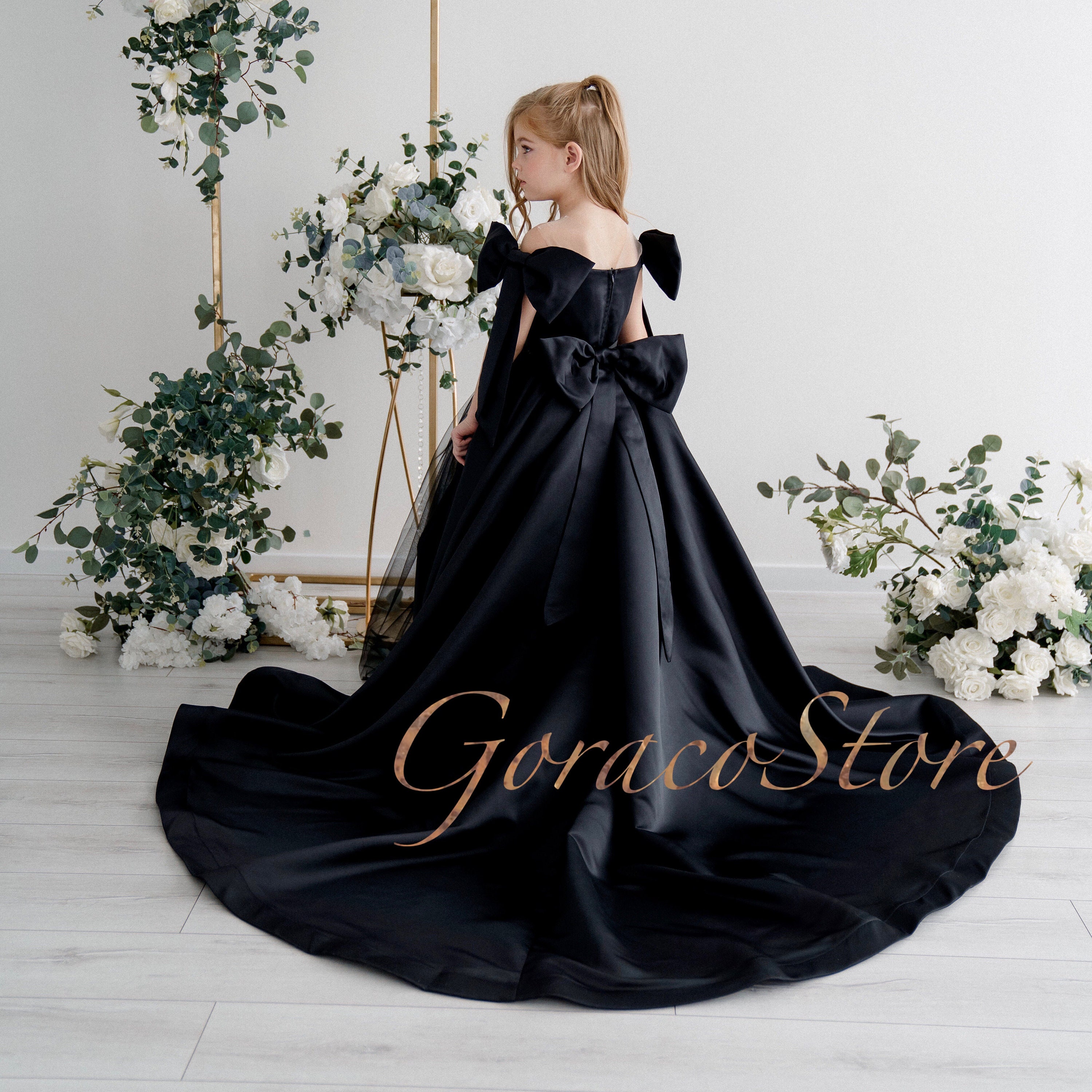 Black Flower Girl Dress Toddler, Satin Flower Girl Dress, Flower Gi...