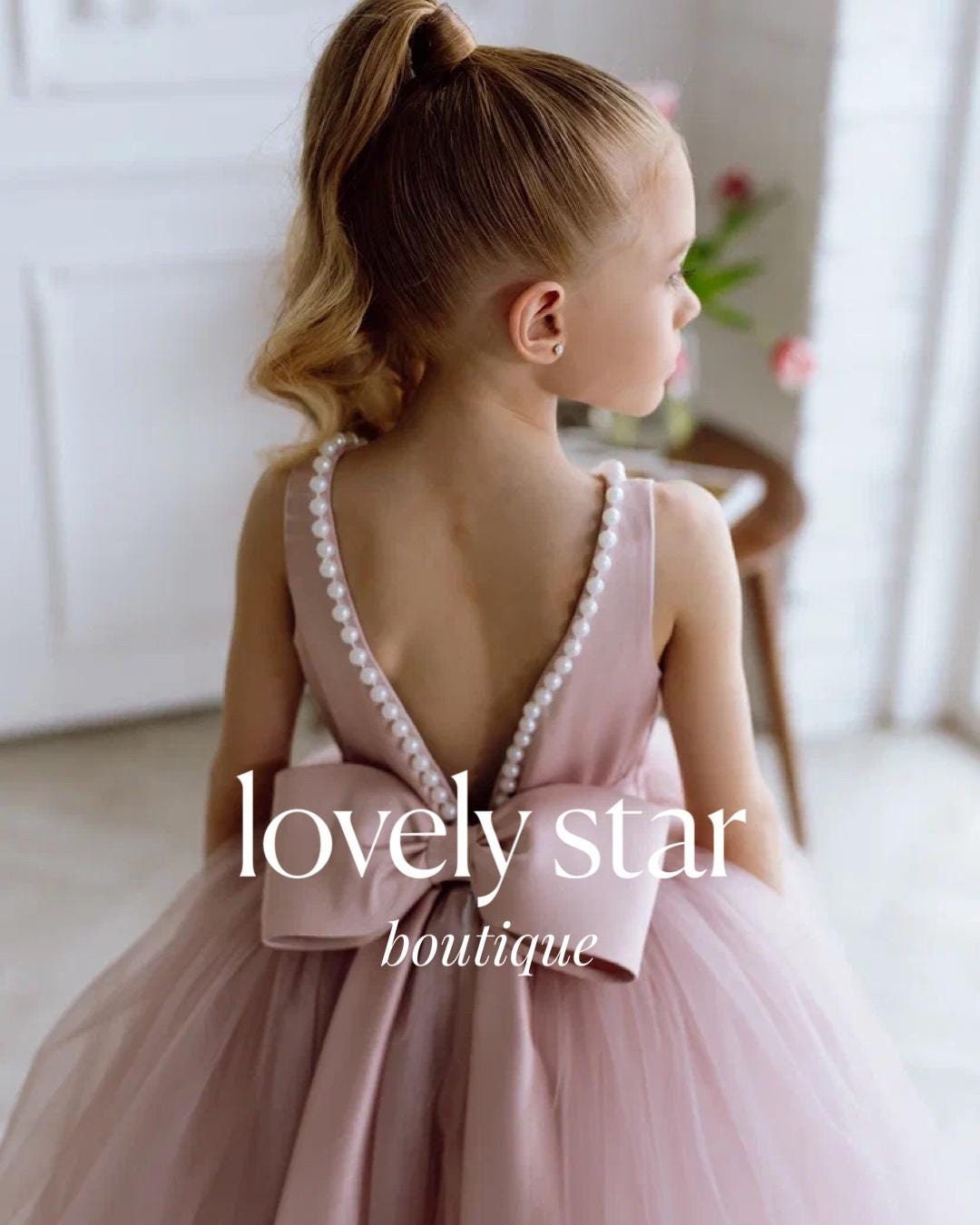 Pearl flower girl dress,Girl wedding dress,Tulle flower girl dress,...