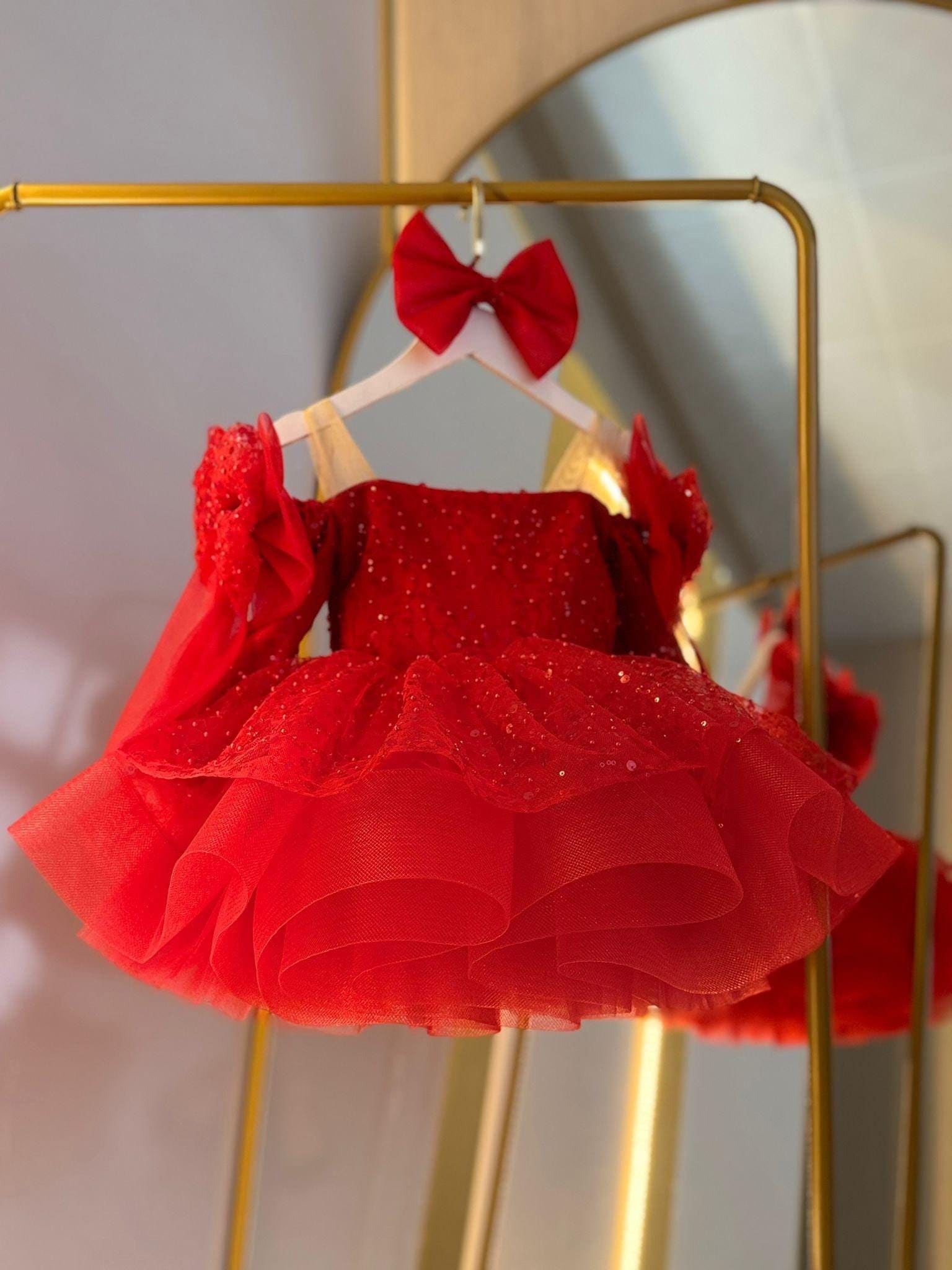 Red Baby Girl Pageant Dress, Tulle Baby Dress, Puffy Girl Dress, Red Princess Dress, First Birthday ...
