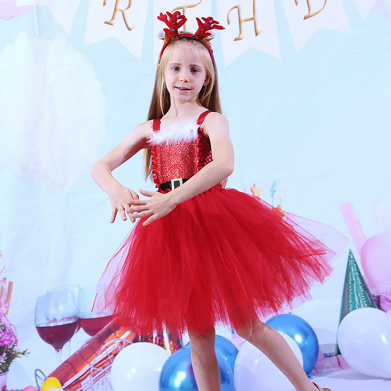 Kids Little Girls' Dress Solid Colored Elk Christmas pattern A Line...
