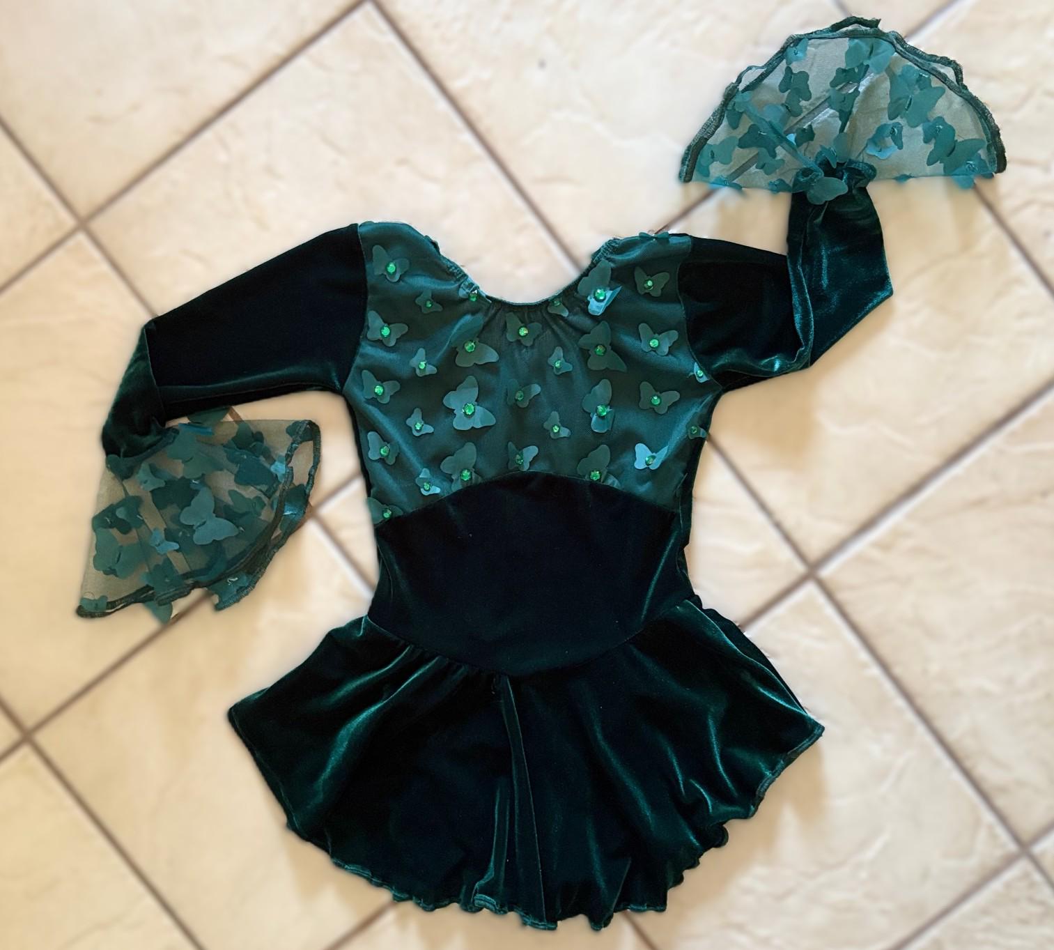 handmade Girls Dark Green Velvet 3D Butterfly Gems Cheer Dance comp...
