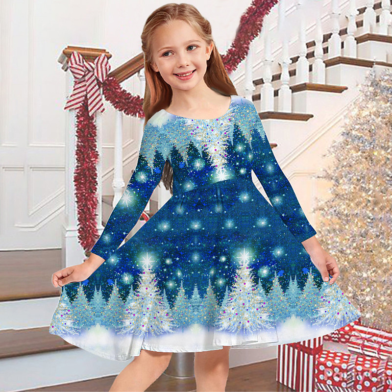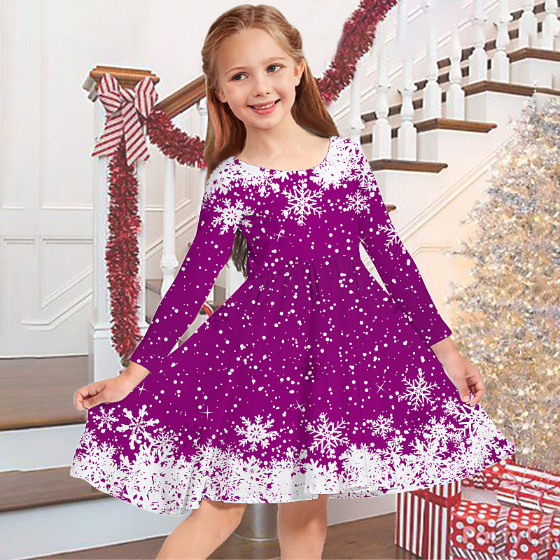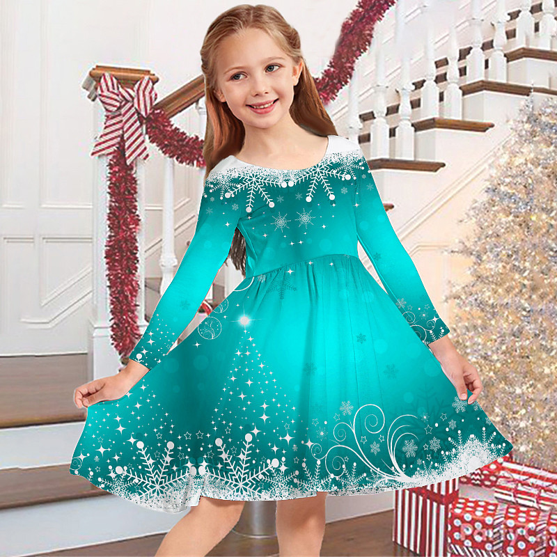 Kids Girls' Christmas Dress Dress Snowflake Dress Snowflake Long Sl...