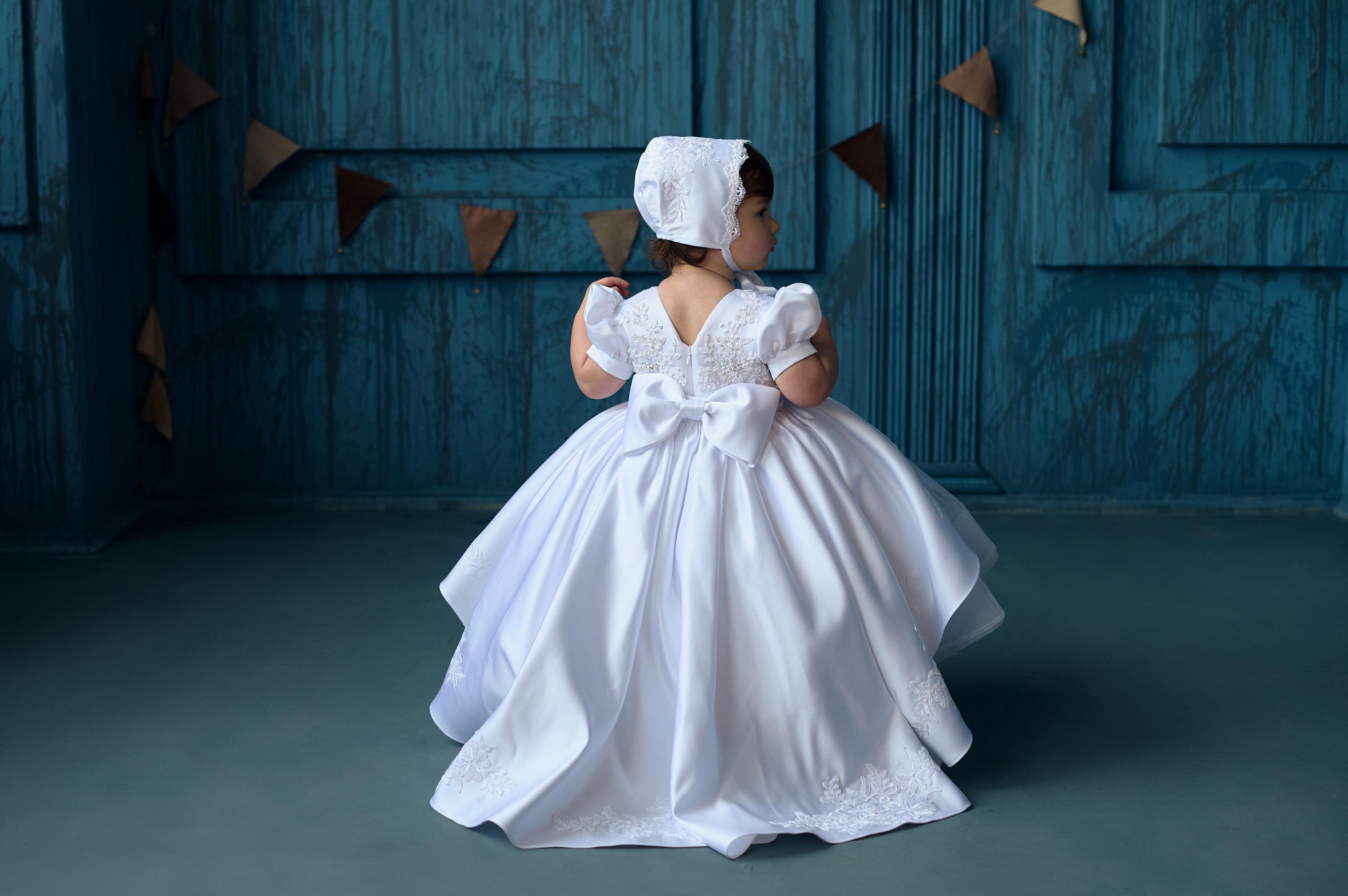 Holy Communion Dress, 1st Communion, white satin dress, baby weddin...