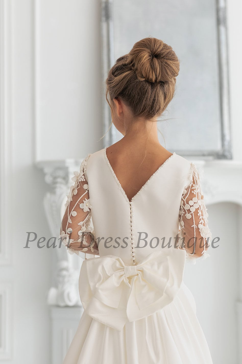 1st Communion, Holy Communion Dress, white satin dress, first commu...
