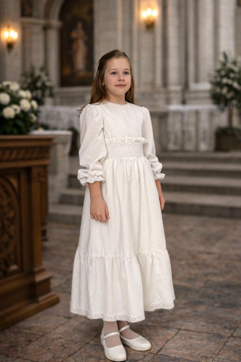 First Holy Communion Dress for Girl, Cotton Communion Dress, White ...