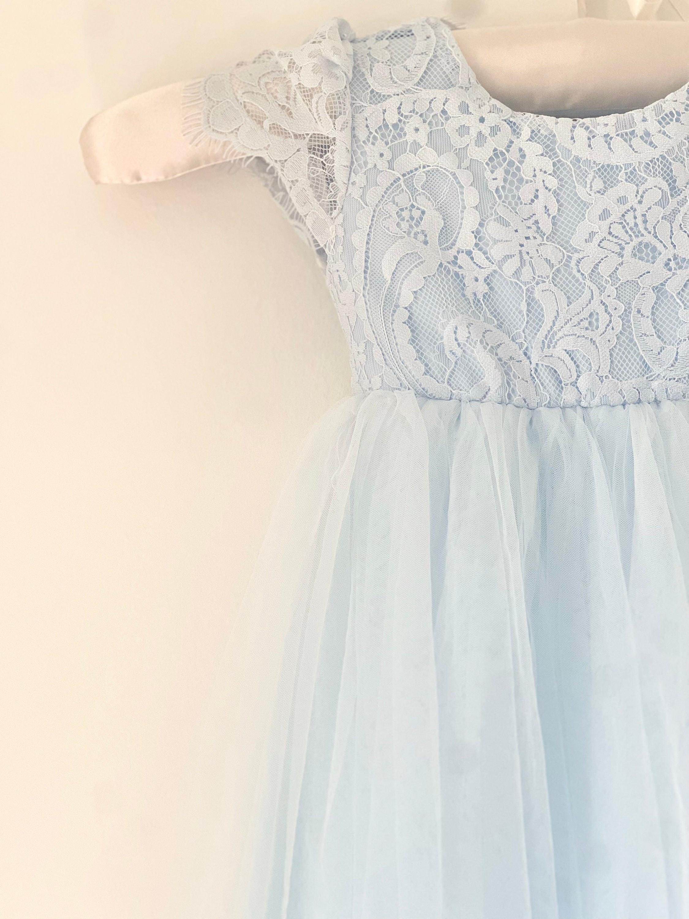 Light Blue Tulle Flower Girl Dress, Easter Girls Dress, Spring Flow...