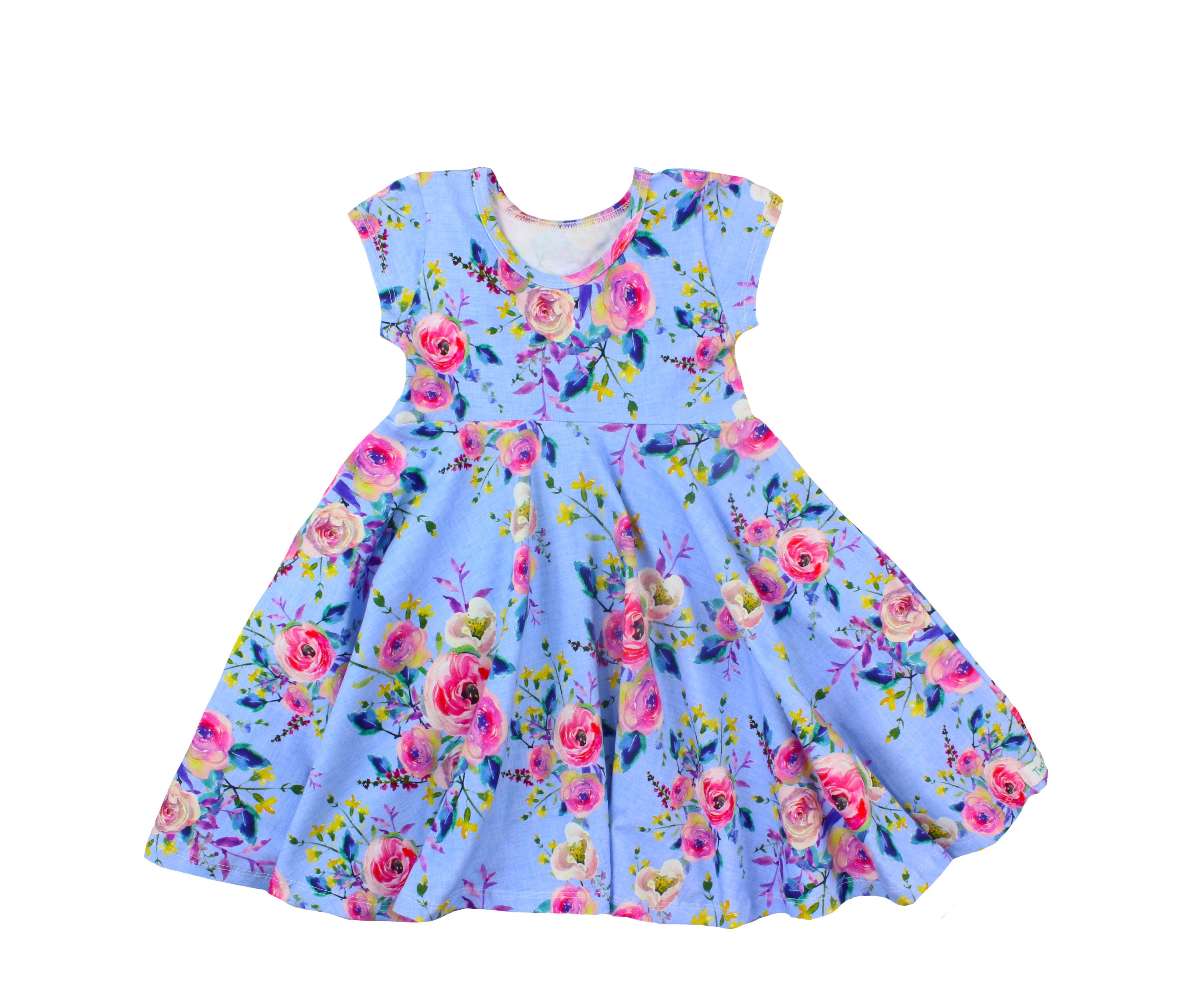 Blue Summer Twirly Dress Watercolor Floral Spring Easter Dress Todd...