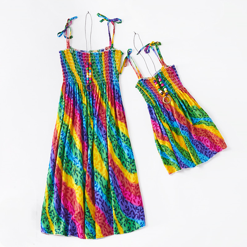 Mommy and Me Children's Day Dresses Rainbow Striped Daily Wear Prin...
