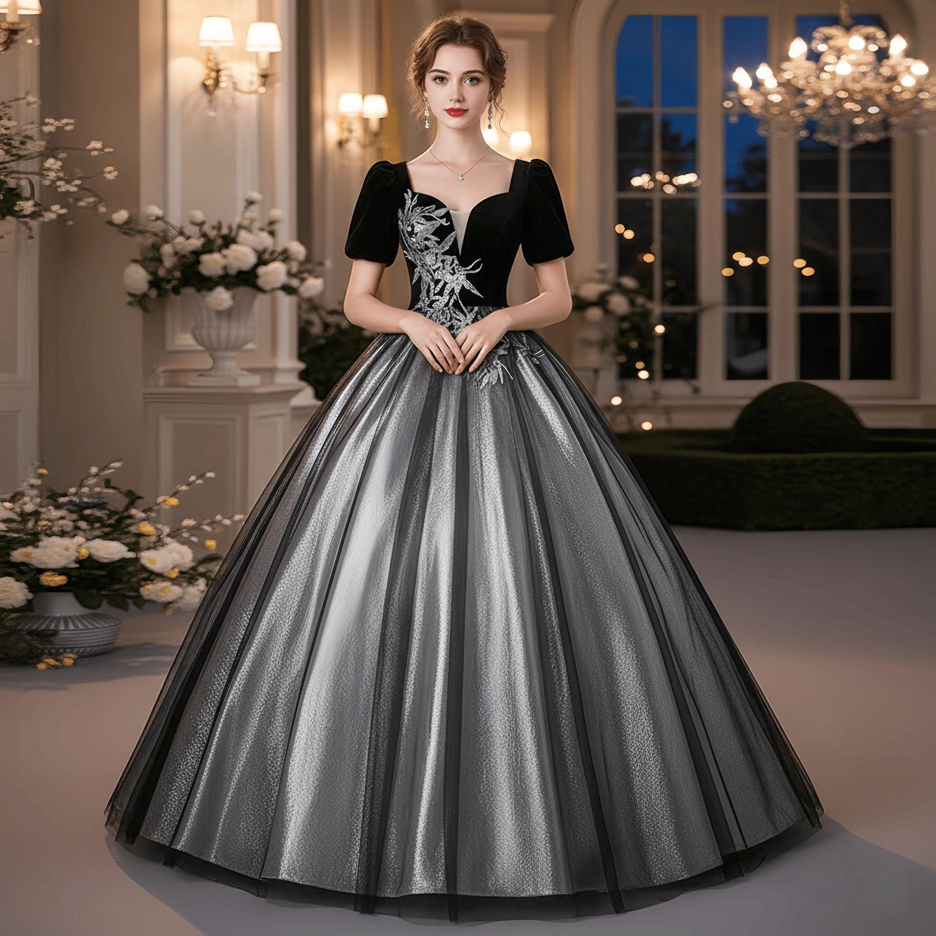 Elegant Black and Silver Ball Gowns,Princess Dress,Wedding Dress,Pr...