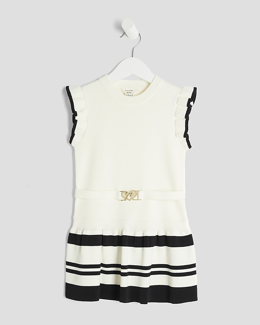 • River Island Mini Girls Dress Cream Belted Ruffle Hem Viscose - Siz...