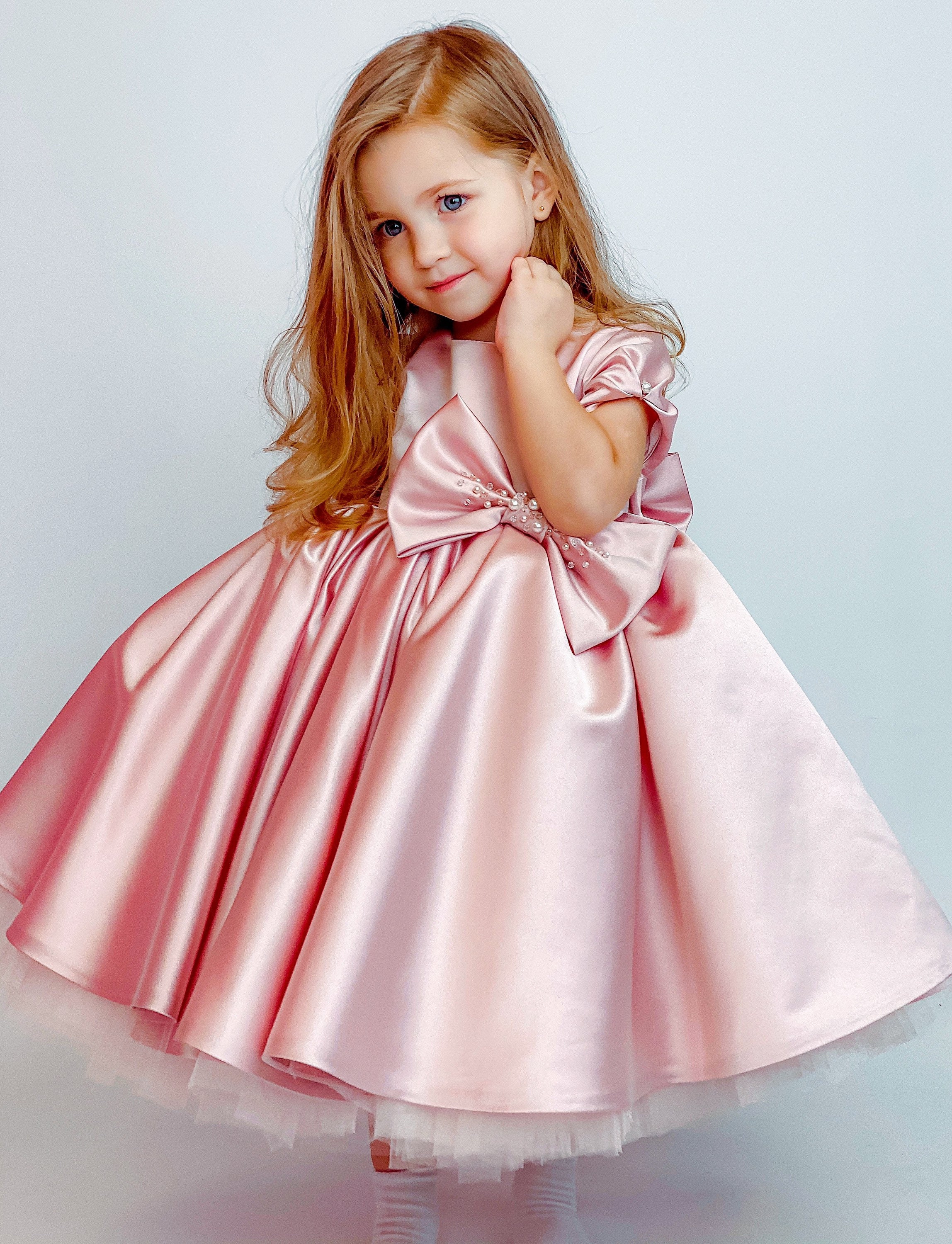"Baby girl dress Special Occasion Satin girl dress Flower girl dress Pink Tulle flower girl dre...
