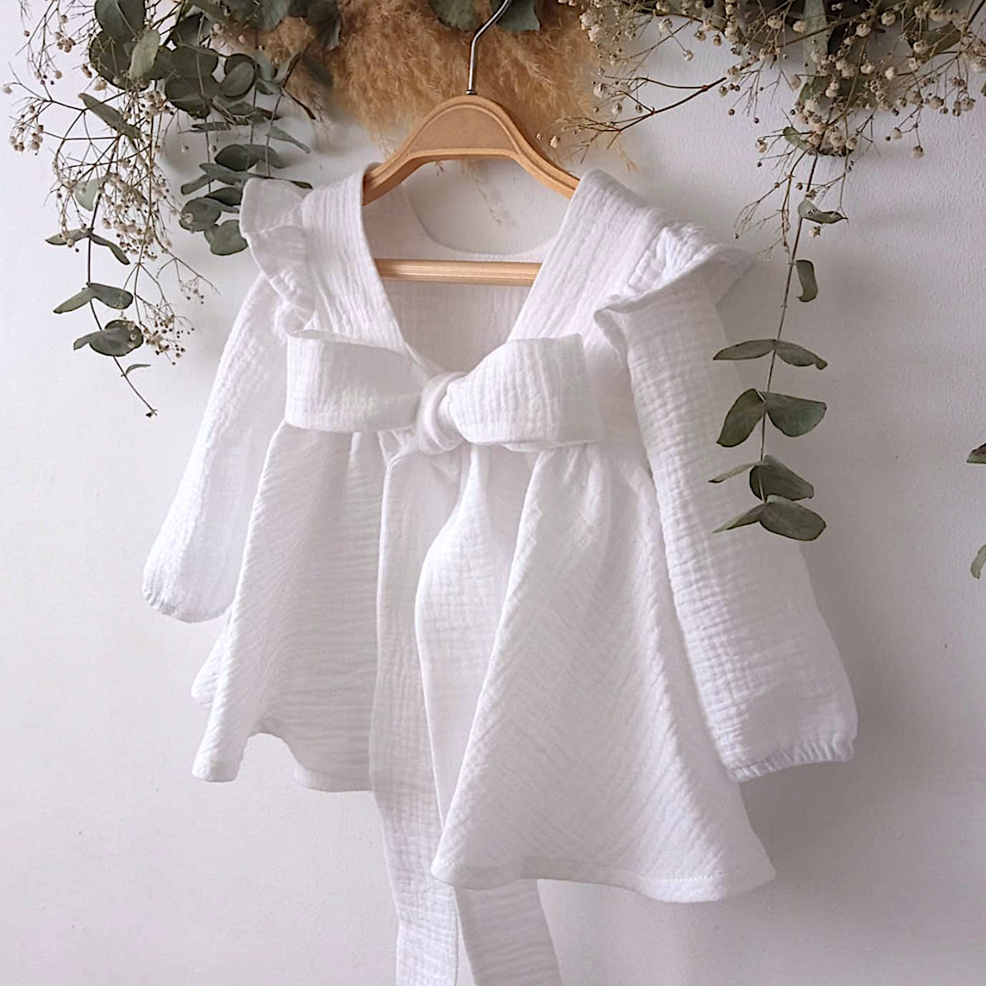 "white dress for baby girls, organic cotton chiffon with boho style ruffled diaper cover, a per...