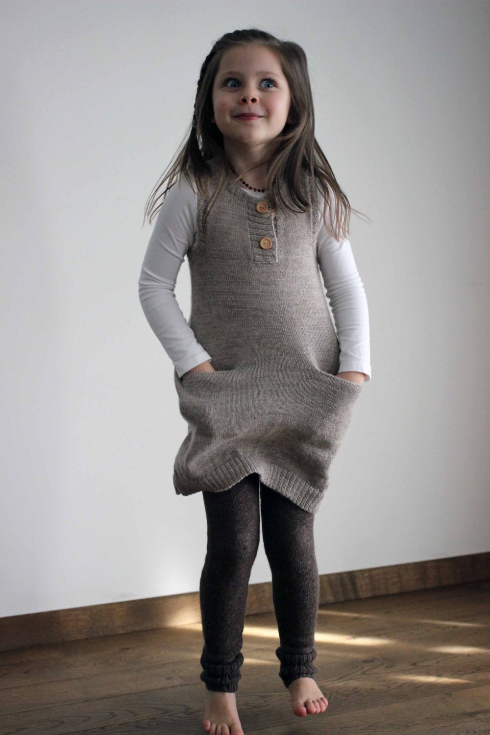Alpaca knit girl dress with pockets knit beige, gray girl tunic kni...