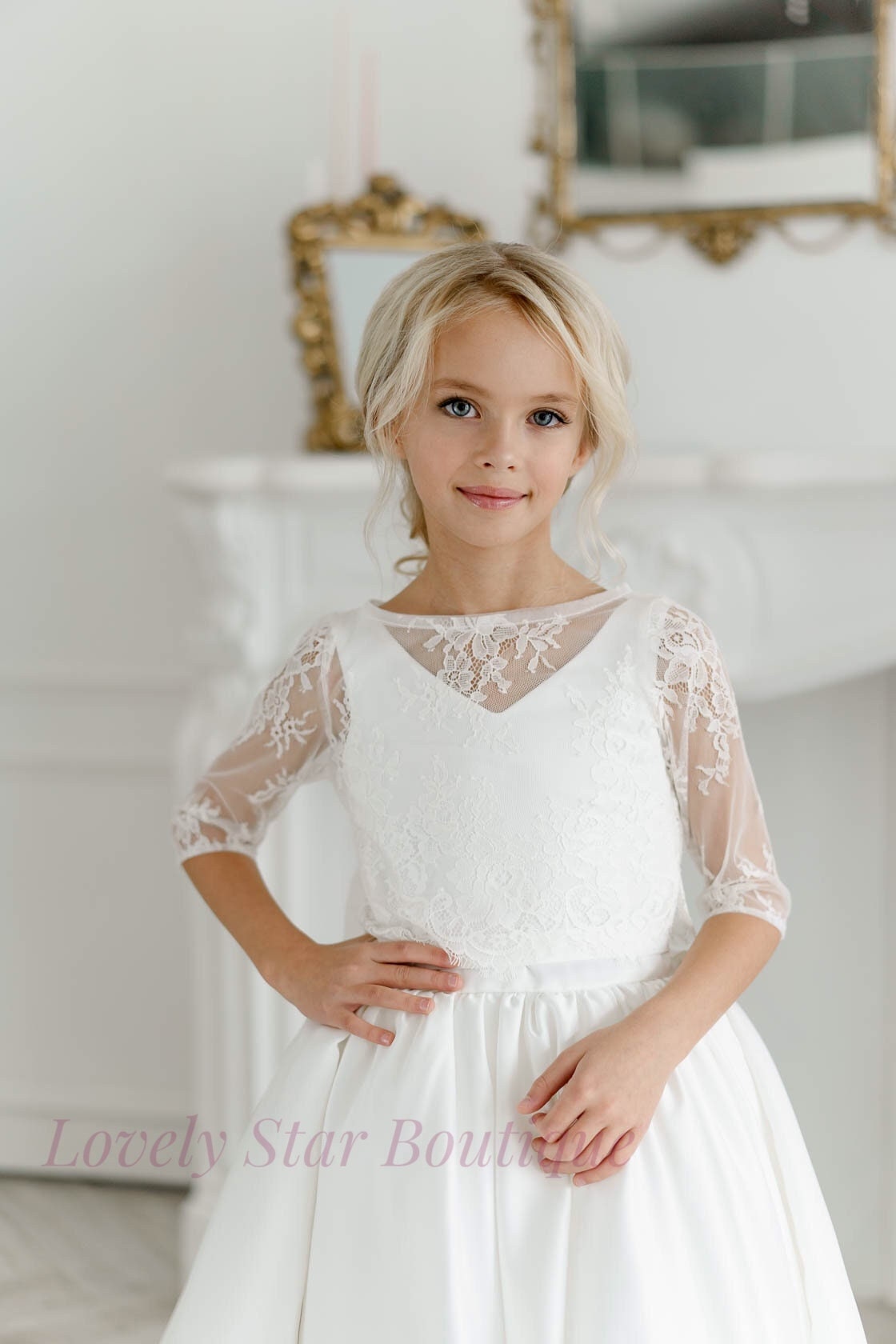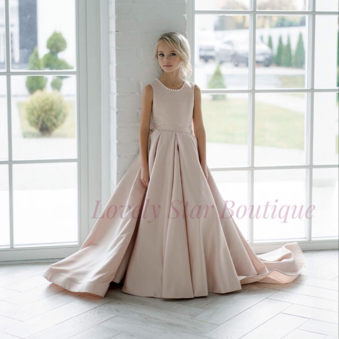 Lace flower girl dress, Flower girl dress satin, Girl formal dress,...