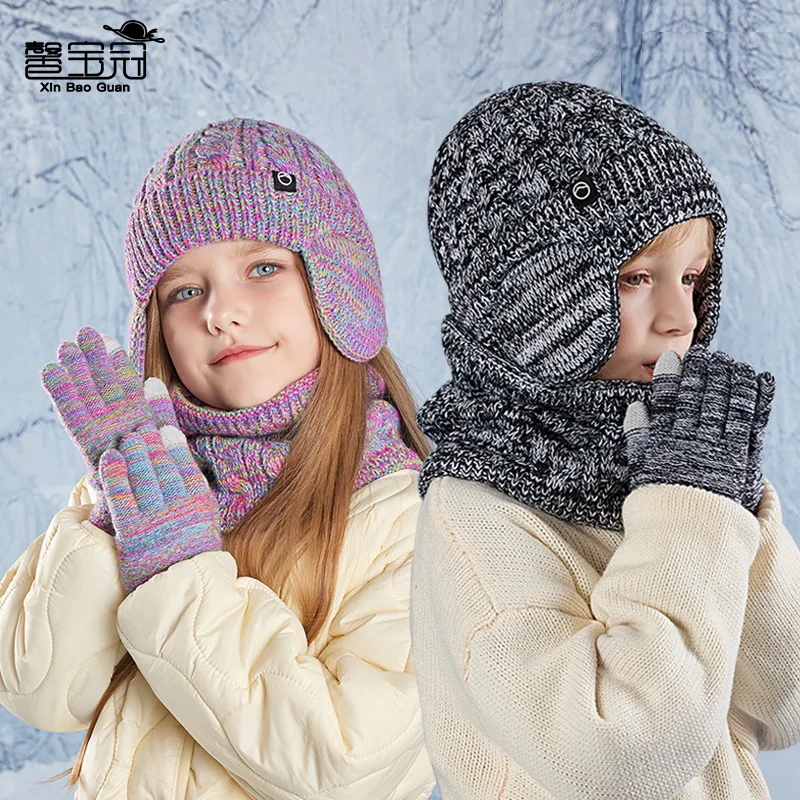 2025 New Kids Winter Hat Gloves and Scarf Set Warm Girls Boys Winte...