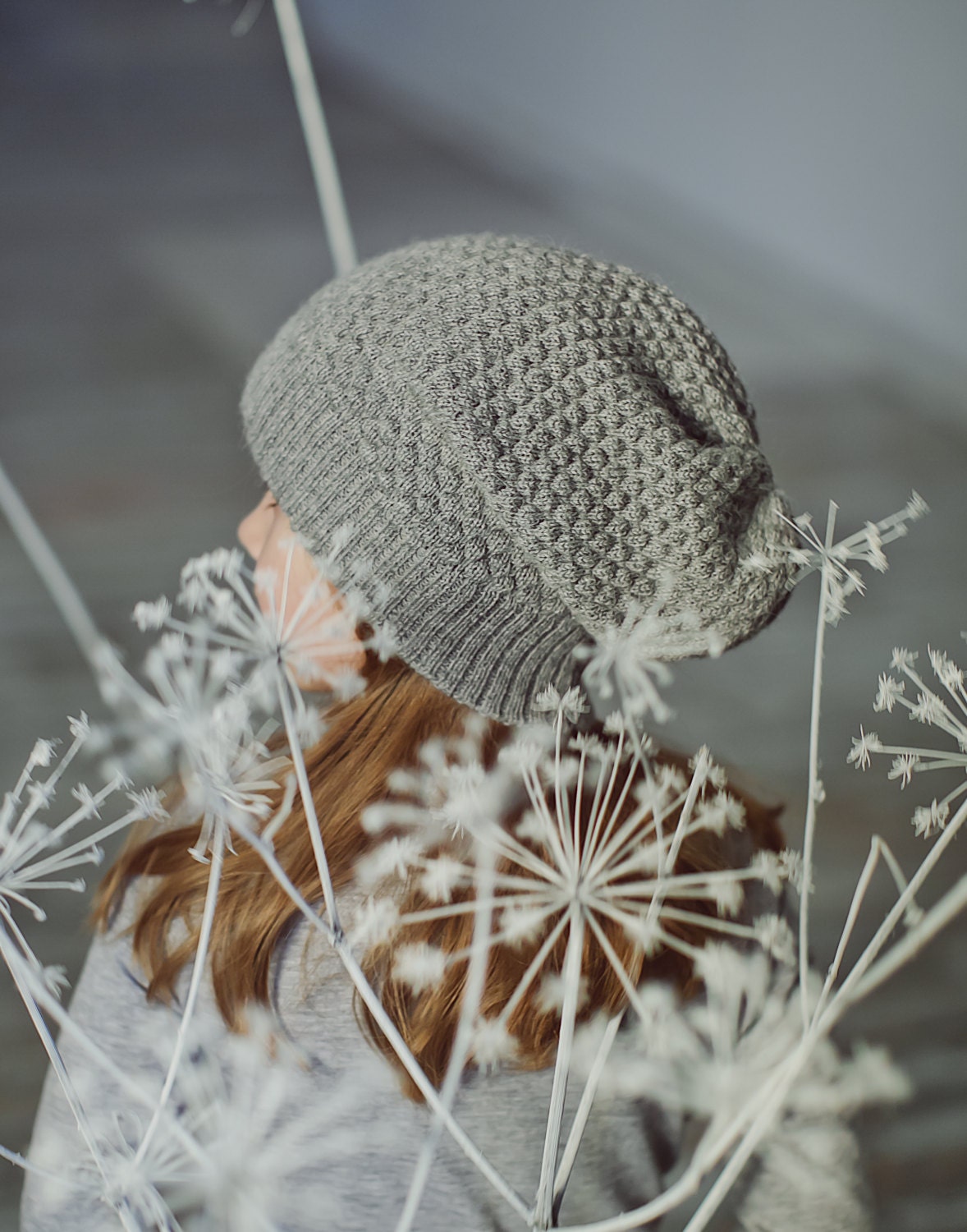 Stylish and cozy slouchy hat. Textured knit pattern gives extra warm. 100 % baby alpaca The main pro...