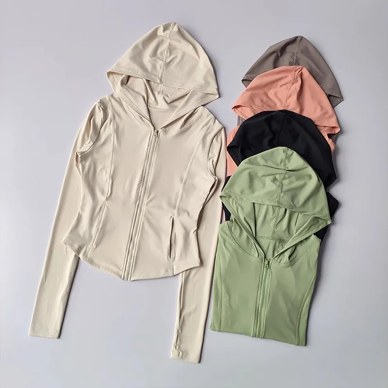 Women Hooded Running Jackets Cycling Coat Yoga Clothing Jogging Shirt Tights Thin Outdoor Sports Clo...