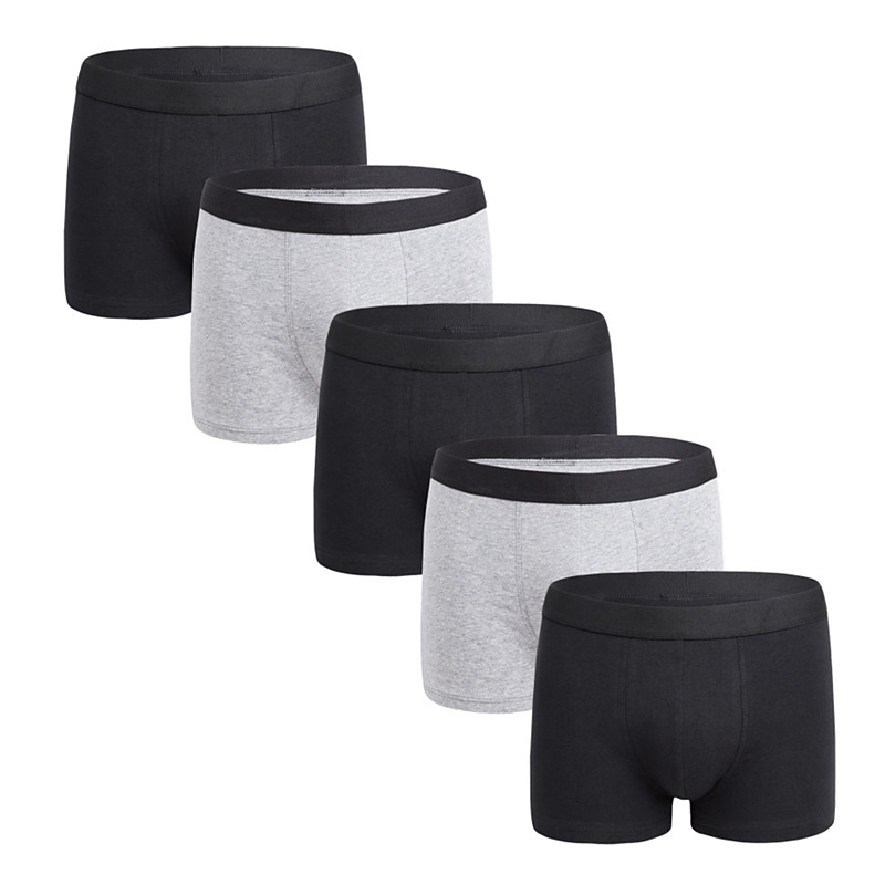 Fabric:Cotton; Gender:Men's; Quantity:5-Pack; Panties Category:Boxers Underwear,Boxer Briefs,Basic P...
