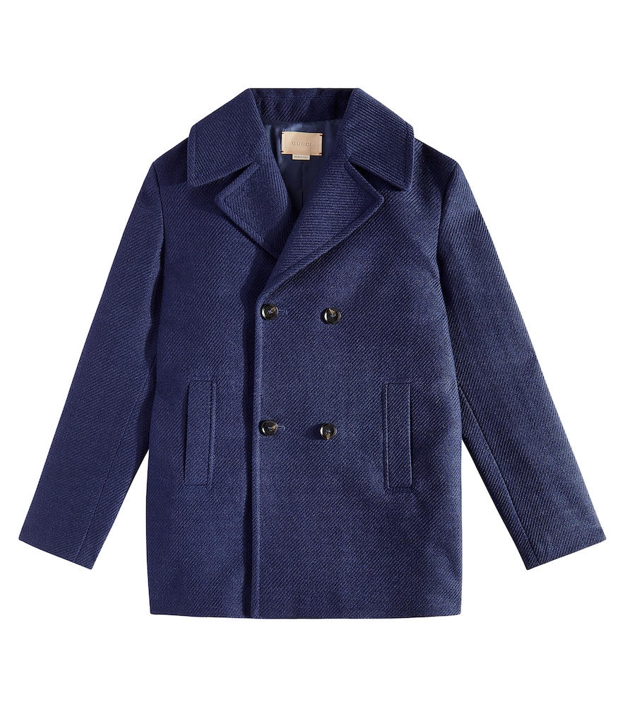 Gucci Kids, Web Stripe logo wool-blend coat, Kids, Blue, Y 10, Boys...