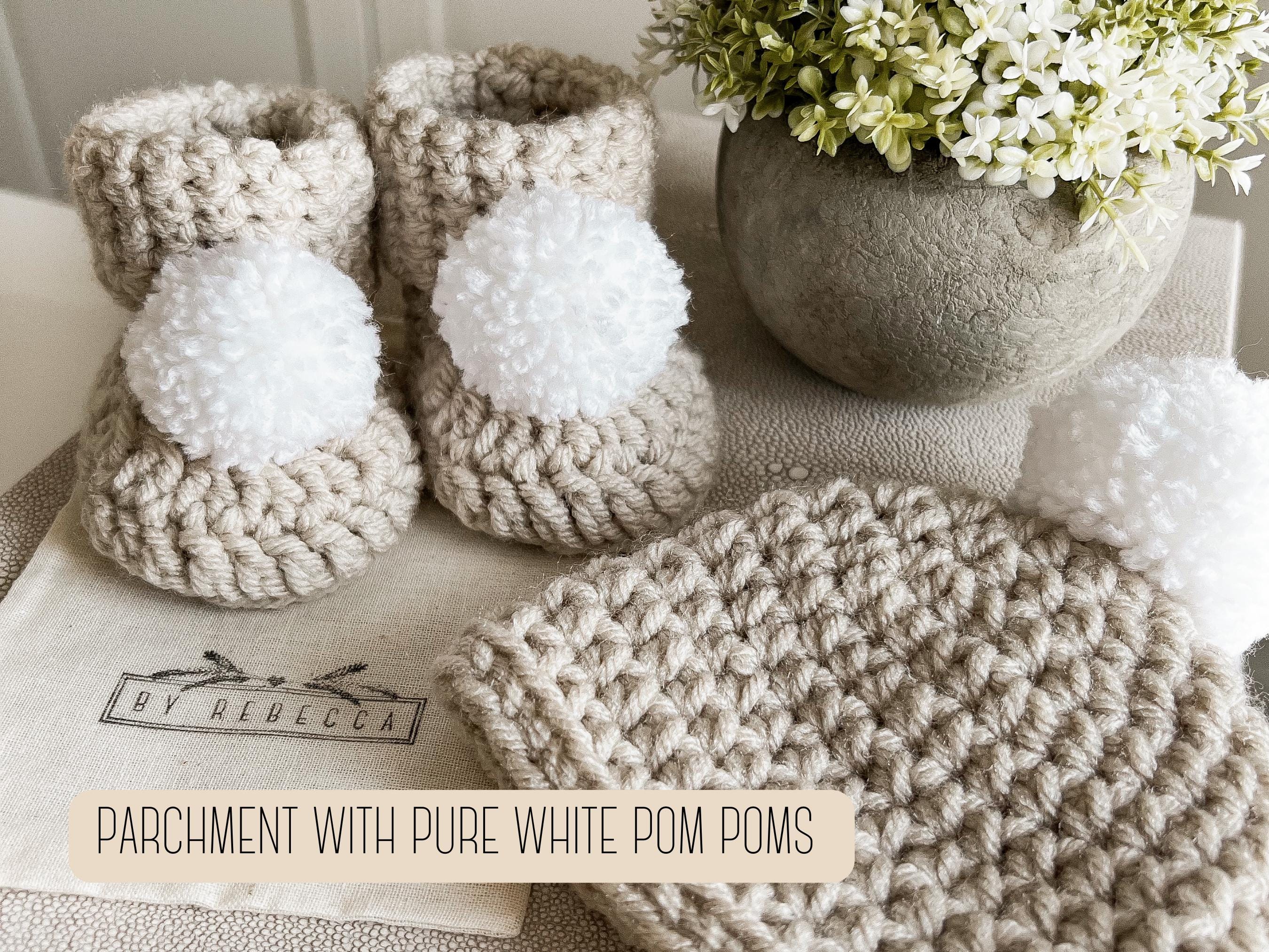 Booties & Hat Baby Bundle - Custom - Crochet Baby Shoes - Pom P...