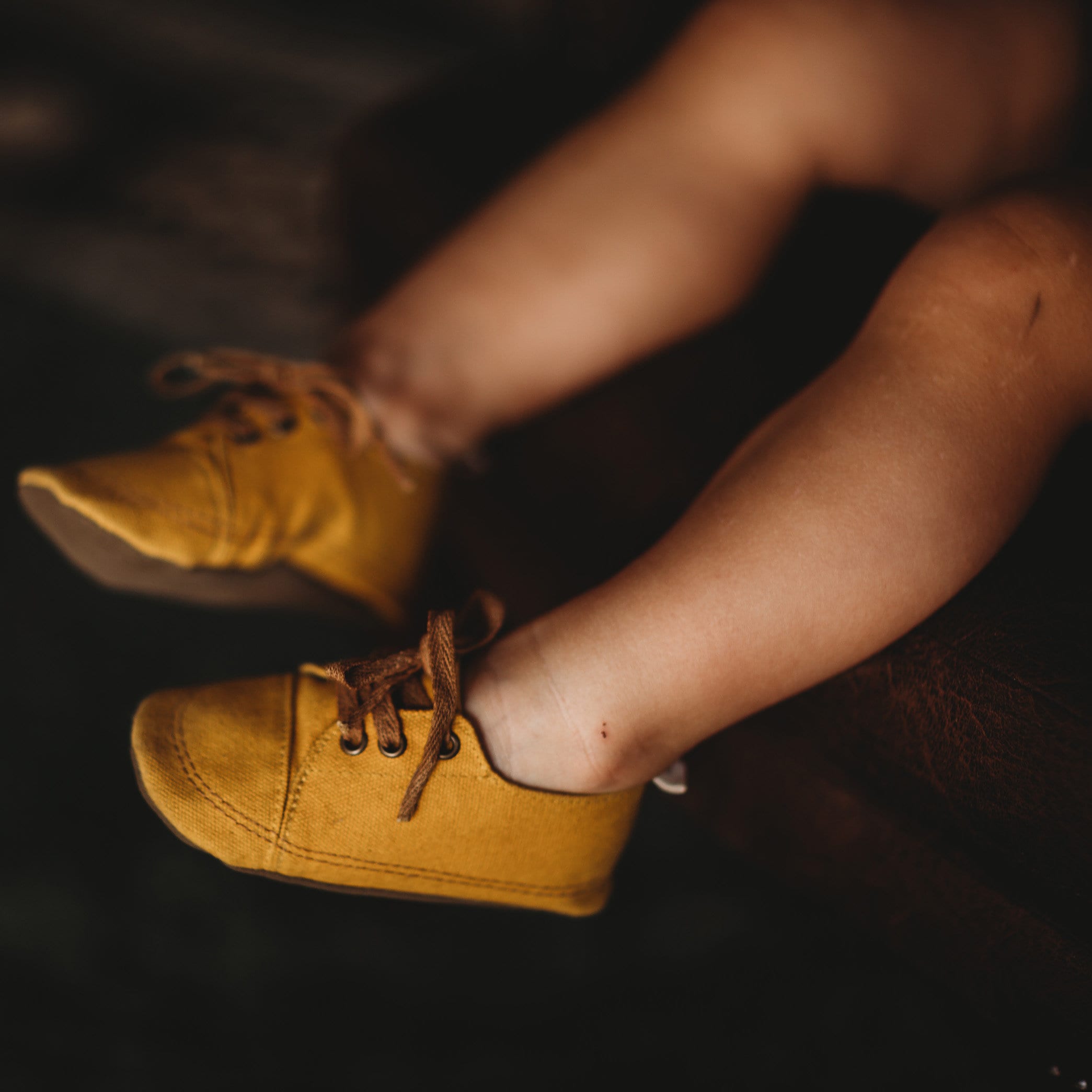 Mustard first walker sneakers. Soft sole baby shoes. Toddler lace u...