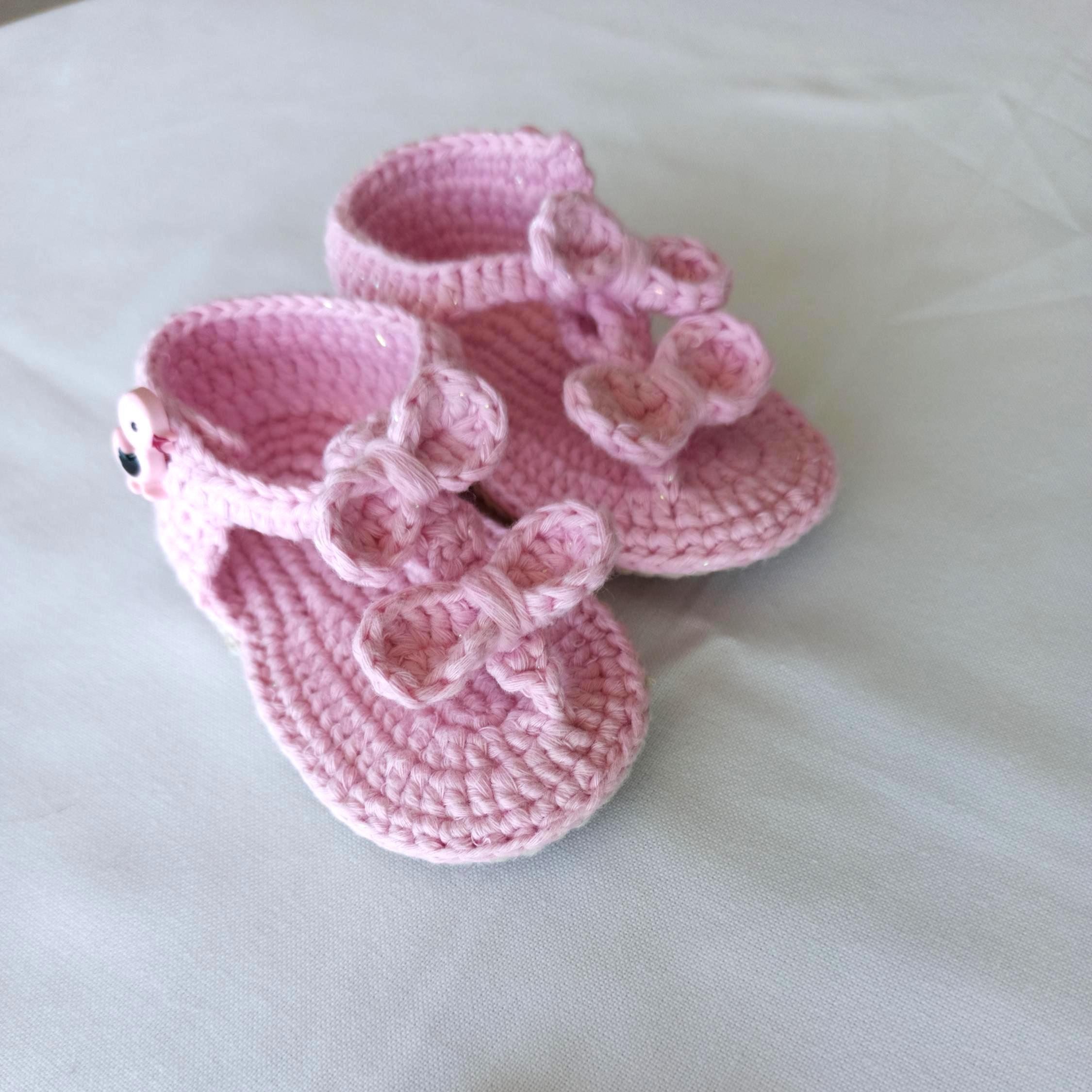 Cute pink ribbon crochet baby sandals, handmade crochet baby sandals, handmade flip flops for baby g...