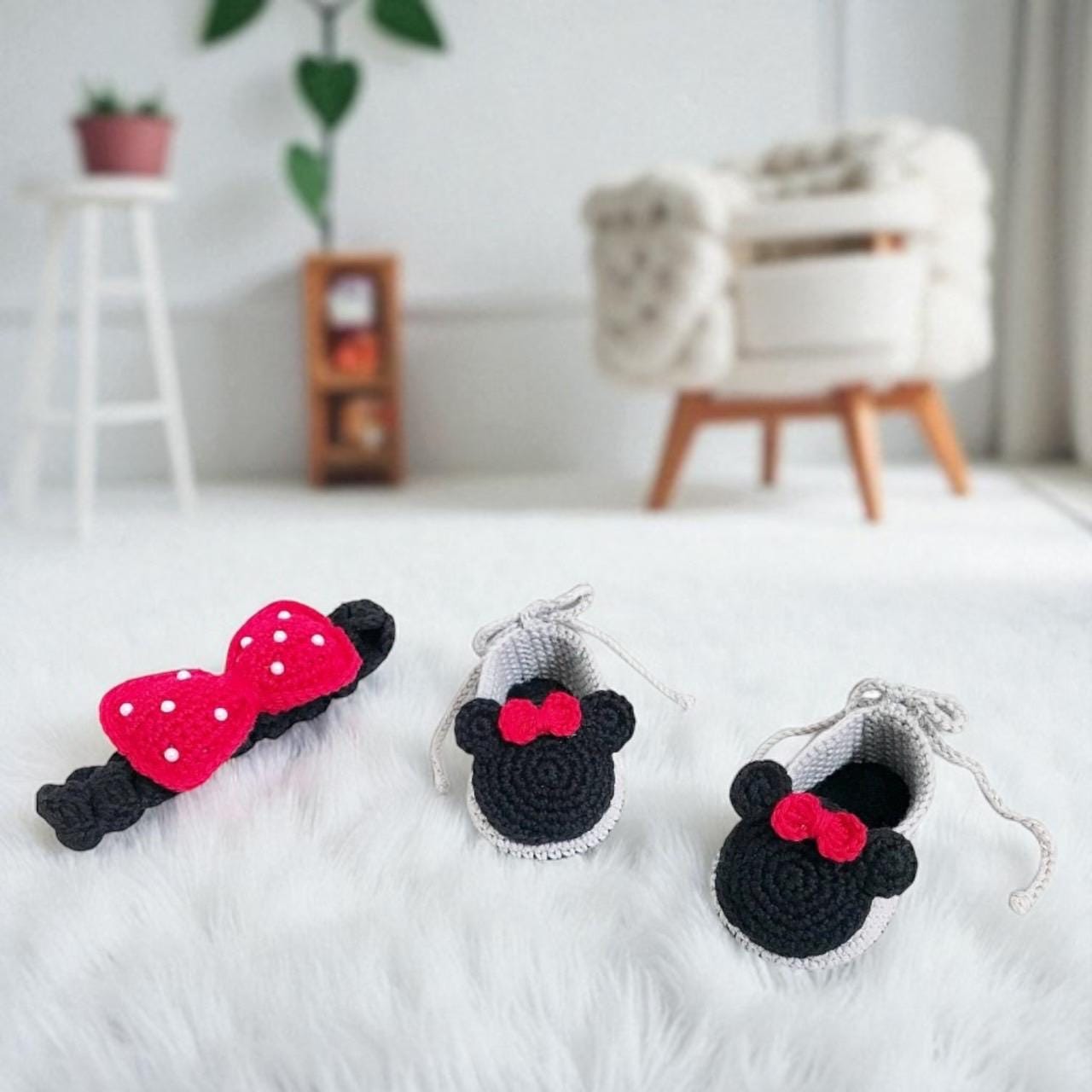 Crochet Baby Mickey shoes and headband set - Baby headband - Croche...