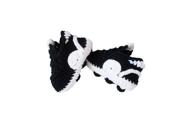 Crochet baby Soccer Shoes, Baby's First Cleats, Black white Baby Sp...