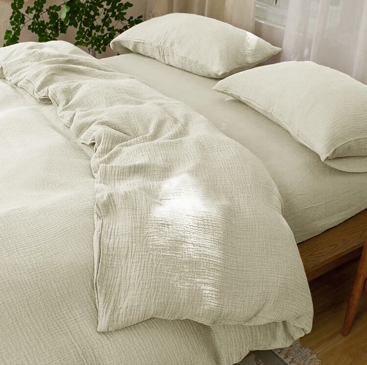 New Arrival Soft 100% Cotton Muslin 2 Layers Fitted Sheet Duvet Cov...