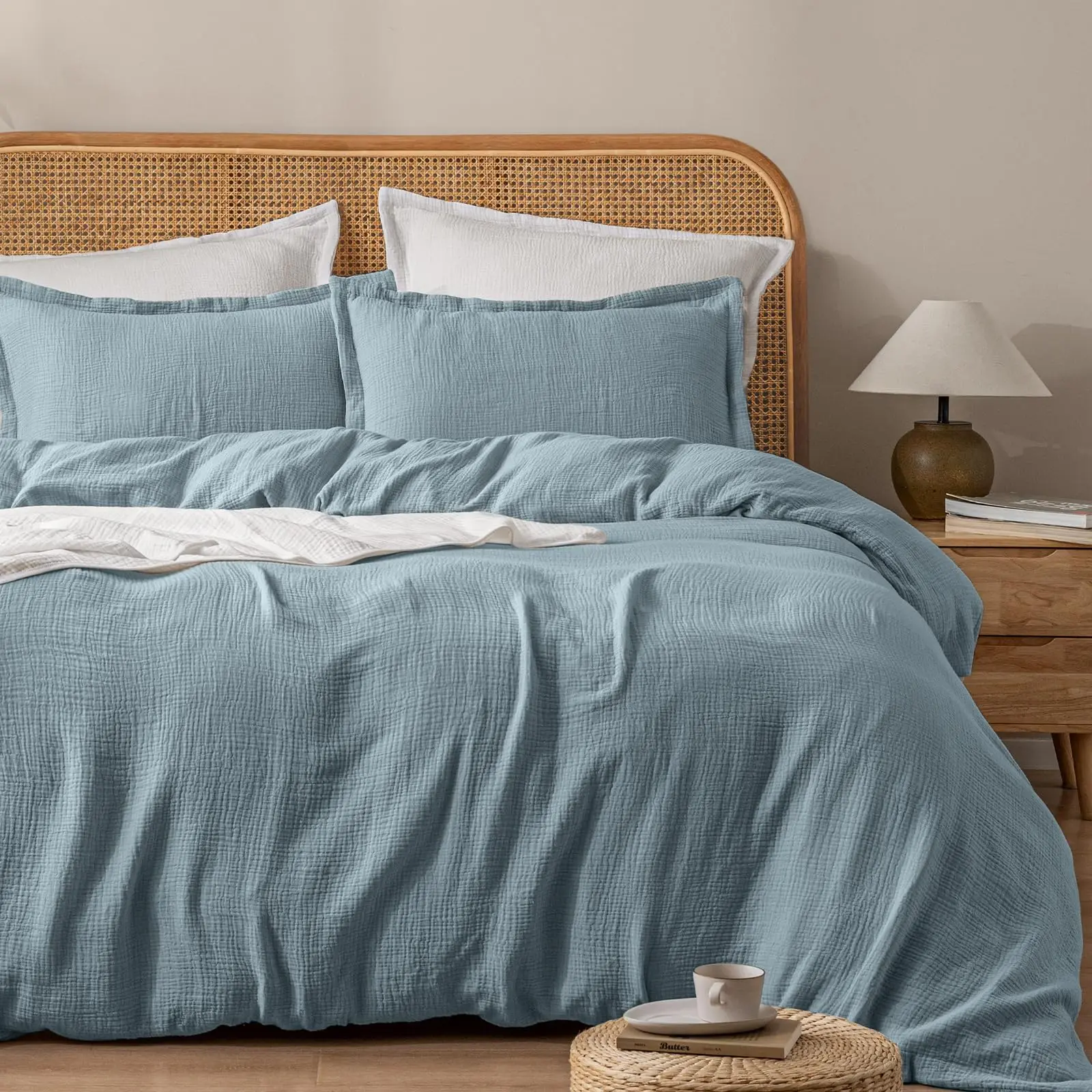 Dusty Blue 2 Layer 100%cotton Muslin Duvet Cover Muslin Bedding Set...