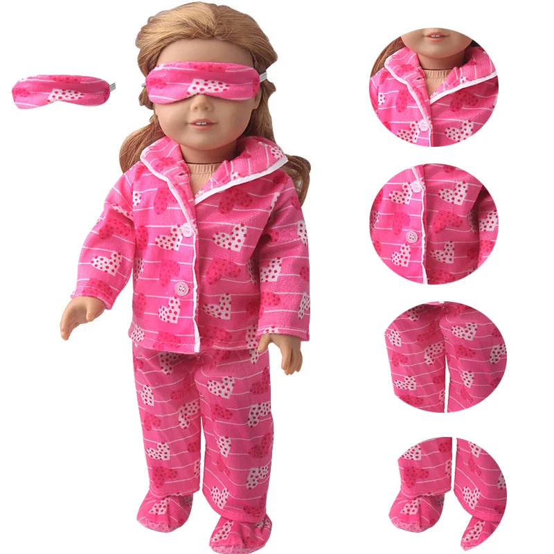 18 inch Doll Girl Plush Pajama Set Doll Winter Pajama Eye Mask Shoes Top Pants Four Piece Set Pajama...
