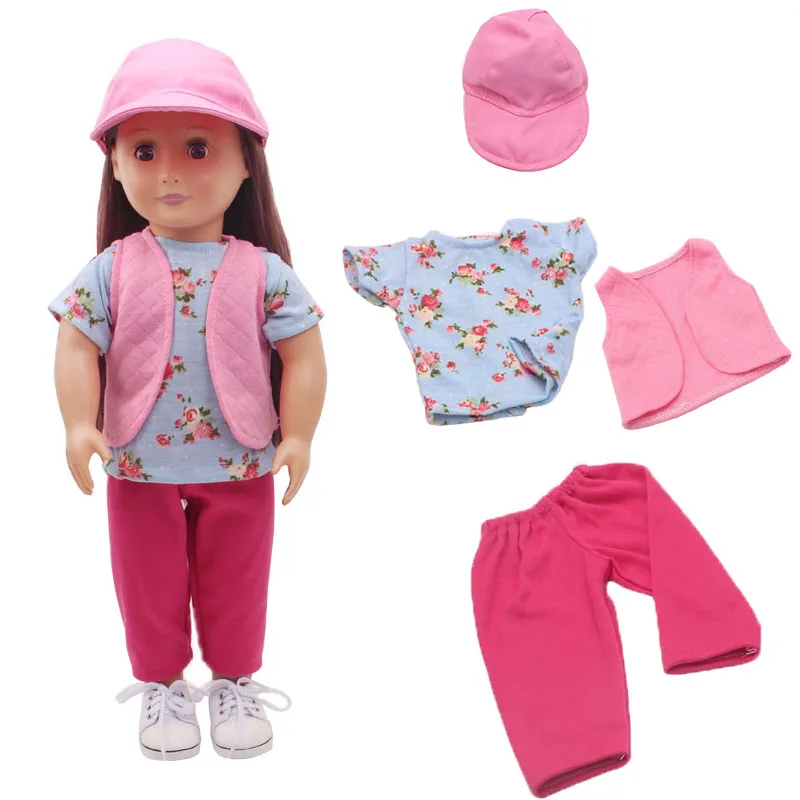 18 inch doll girl photography suit set, daily artistic outfit, 4-piece set, hat, short sleeved vest ...