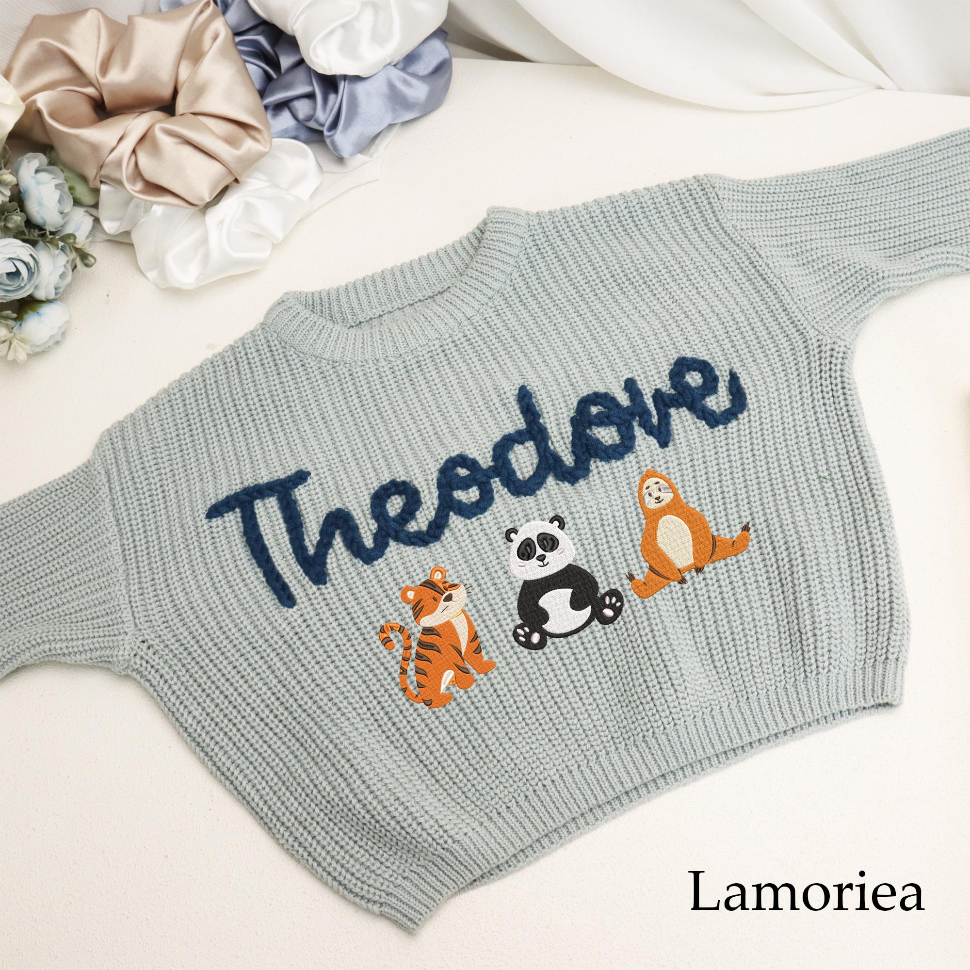 Introducing the Baby Name Sweater, a one-of-a-kind garment designed with care for your little one. O...