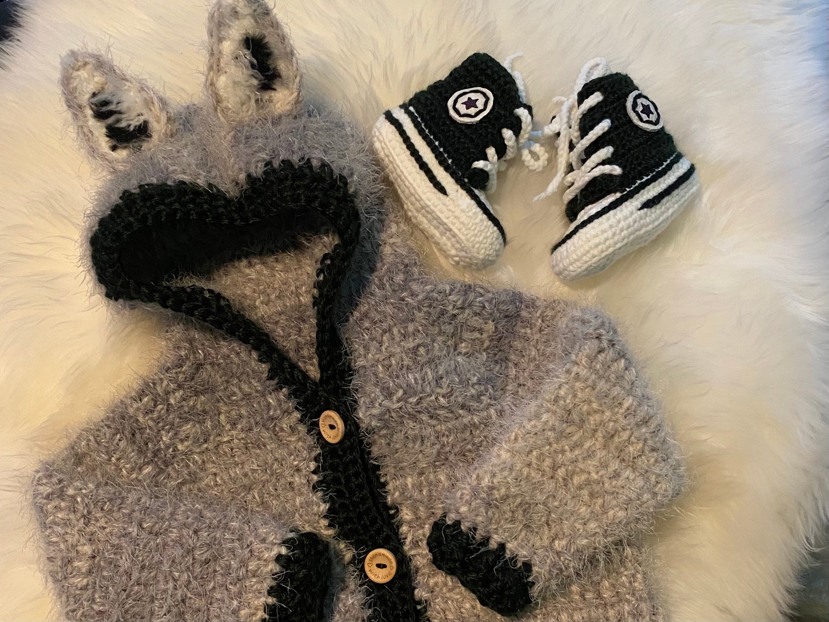 Wolf Sweater, Baby Crochet Sweater Set, Baby Shower Gift, Unisex Ba...