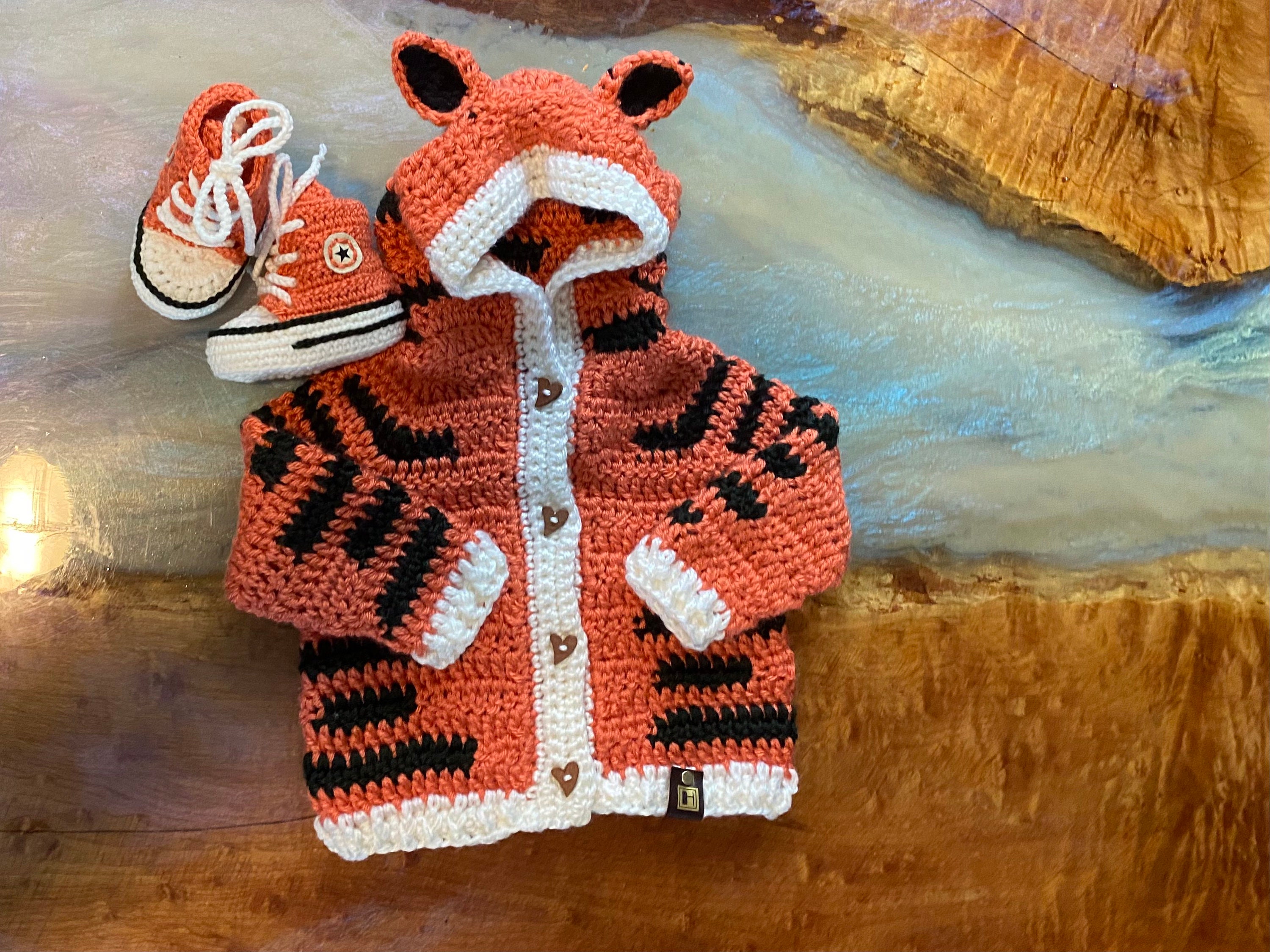 Tiger Sweater, Baby Crochet Sweater Set, Baby Shower Gift, Unisex B...
