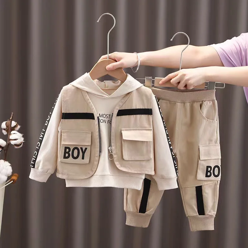 New Spring Autumn Baby Clothes For Boys Suit Children Fashion Hoodies Vest Pants 3Pcs/Set Toddler Sp...