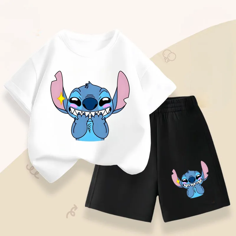 Summer Children's Casual Outfits Stitch Printed Boys Short Sleeved ...