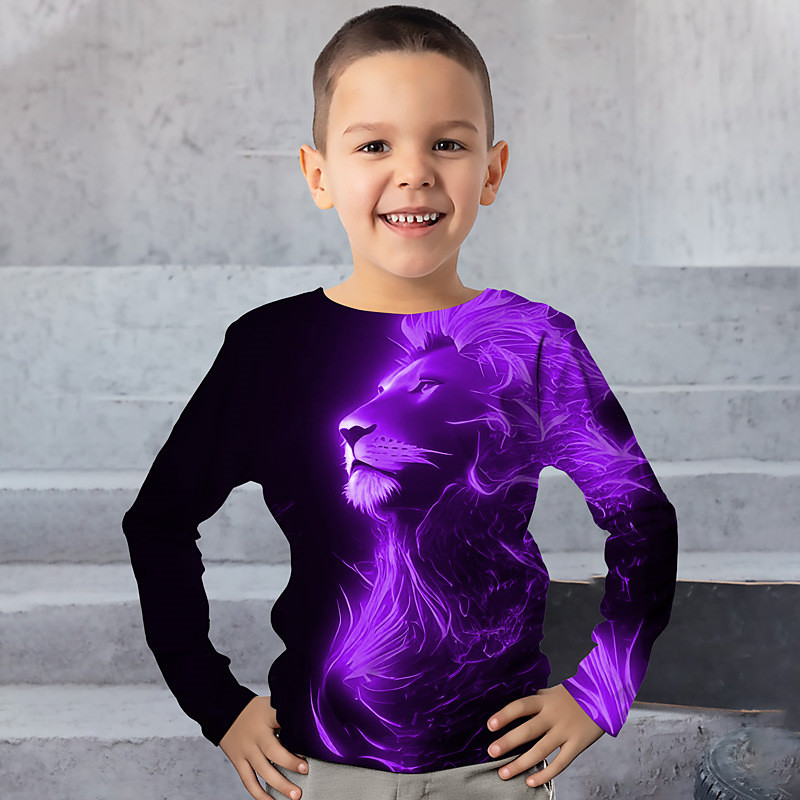 Boys 3D Graphic Animal Lion T shirt Tee Long Sleeve 3D Print Summer...