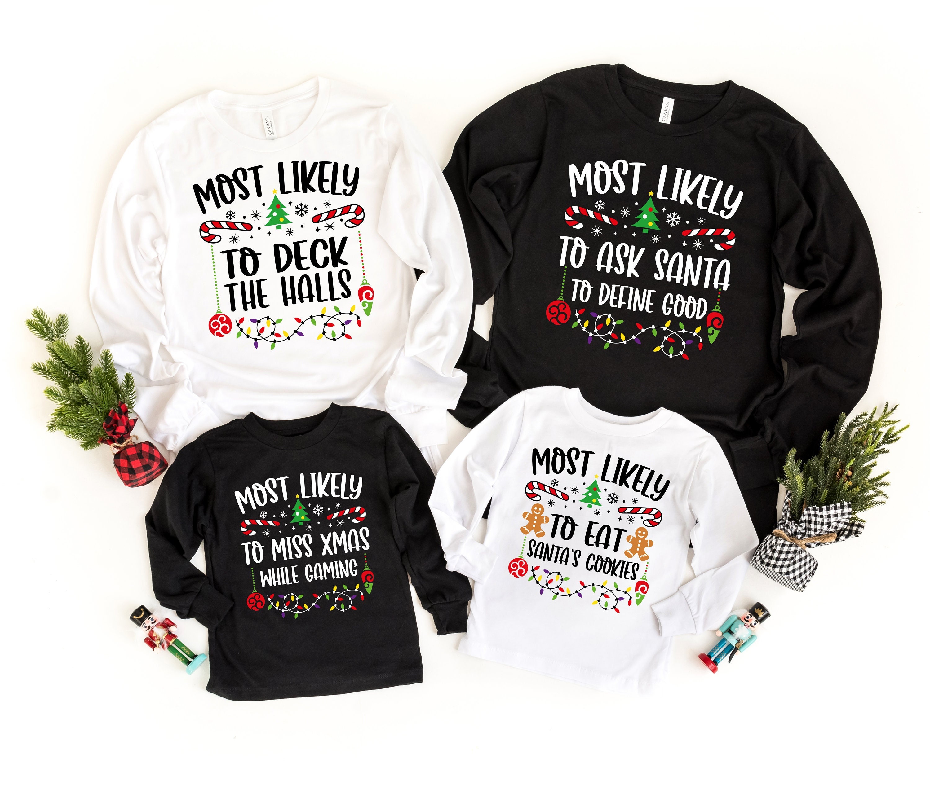 Most Likely To Christmas Long Sleeve Shirt, Custom Christmas Long T-Shirt,Christmas Matching Long Sl...