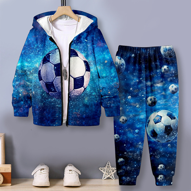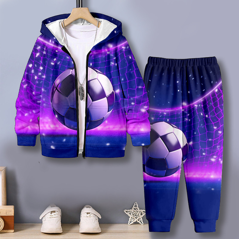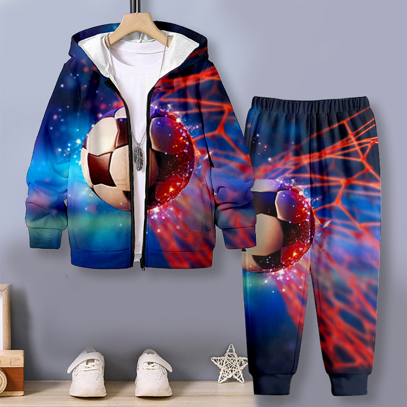 Boys 3D Football Hoodie Pants Set Long Sleeve 3D Printing Fall Wint...