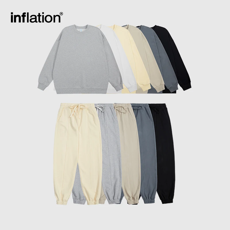 INFLATION Solid Heavyweight French Terry Sweatshirt Set Couple Jogg...